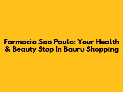 Farmacia Sao Paulo: Your Health & Beauty Stop In Bauru Shopping
