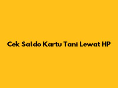 Cek Saldo Kartu Tani Lewat HP