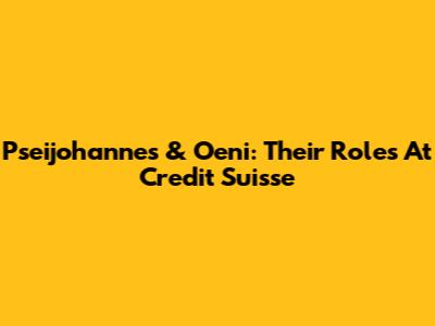 Pseijohannes & Oeni: Their Roles At Credit Suisse