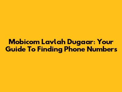 Mobicom Lavlah Dugaar: Your Guide To Finding Phone Numbers